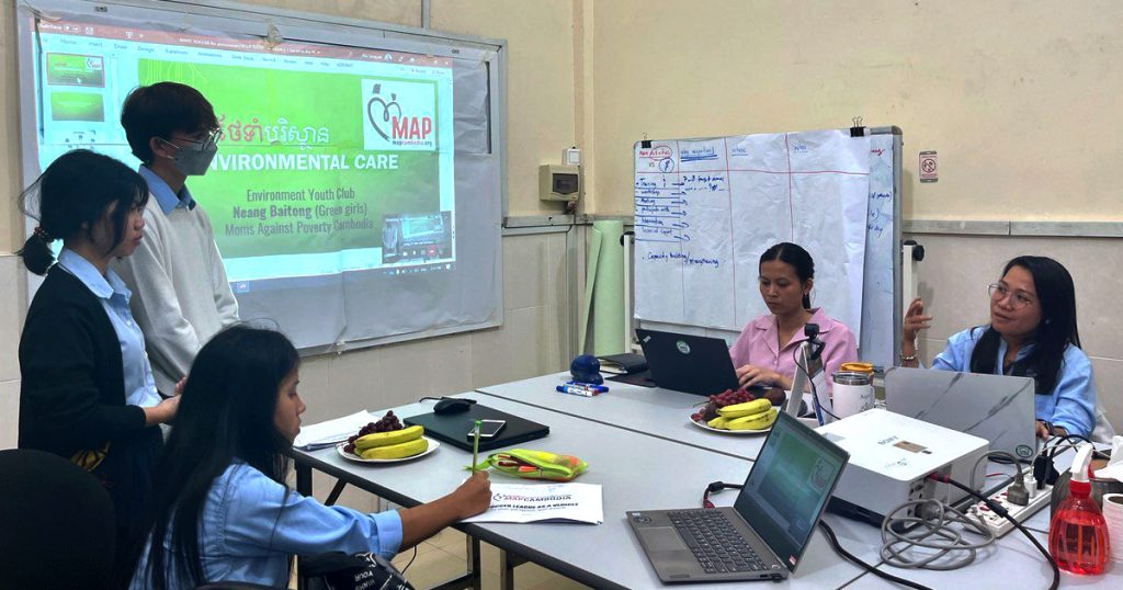 យុវជនចាកចេញពីមណ្ឌល (Careleaver) ៣នាក់ ដែលជាសមាជិកភាពនៃ “ក្រុមនាងបៃតង” បានធ្វើបទបង្ហាញ និងចែករំលែកពី ផែនការសកម្មភាពរបស់ក្រុមពួកគាត់សម្រាប់ឆ្នាំ២០២៣ ដល់បុគ្គលិកអង្គការម្លប់ឫស្សី និងអង្គការអ្នកម្ដាយជួយដល់ជនក្រីក្រនៅកម្ពុជា នៅថ្ងៃអង្គារ ២កើត ខែមាឃ ឆ្នាំខាល ចត្វាស័ក ព.ស ២៥៦៦ ត្រូវនឹងថ្ងៃទី ៧ ខែកុម្ភៈ ឆ្នាំ២០២៣ មានអ្នកចូលរួម ១៤នាក់ នៅការិយាល័យអង្គការម្លប់ឫស្សី រាជធានីភ្នំពេញ ដោយផ្ដោតលើបរិស្ថានល្អផ្សារភ្ជាប់នឹងកីឡាដើម្បីសុខភាព ជាមួយនឹងគោលបំណង ការគ្រប់គ្រងសំរាម កាត់បន្ថយសម្រាមផ្លាស់ស្ទិច និងការបង្កើតទម្លាប់បរិស្ថានស្អាត មុនពេល អំឡុងពេល និងក្រោយពេលលេងកីឡារួច។ ក្រុមនាងបៃតង គឺជាក្រុមដែលមានសមាជិក៧នាក់ បង្កើតឡើងដោយយុវជនចាកចេញពីមណ្ឌល ធ្វើការស្មគ្រចិត្តផ្ដួចផ្ដើមគំនិតរបស់ខ្លួនជាក្រុមក្នុងឆន្ទៈស្រលាញ់បរិស្ថាន ដើម្បីផ្សព្វផ្សាយទៅកាន់កុមារ និងយុវជនអោយមានការចូលរួមក្នុងការកាត់បន្ថយសម្រាម។ ក្រុមនាងបៃតង បានបញ្ជៀបការយល់ដឹងអំពីបញ្ហាសម្រាមតាមរយៈ Soccer Club។ កុមារ និងយុវជន សហកគមន៍ចំនួន ១០ក្រុម ដែលមានចំនួន៤០នាក់បាន ទទួលបាននូវការណែនាំ មិនអោយប្រើប្រាប់ដបទឹកប្លាស្ទិកមក តារាងបាល តែពួកគេអនុញ្ញាតិអោយយកដបទឹកដែលអាចដាក់ទឹកបានទៀត មុនពេលចាប់ផ្តើមលេង បាល។ សមាជិក នាងបៃតងបានប្រើប្រាស់នូវ បដារផ្សព្វផ្សាយ និងវីដេអូឃ្លីប ដើម្បីលើកកម្ពស់ការថែរក្សាបរិស្ថាន ដែលរៀបរាប់អំពីអ្វីជាបរិស្ថាន របៀបចូលរួមថែរក្សាបរិស្ថាន។